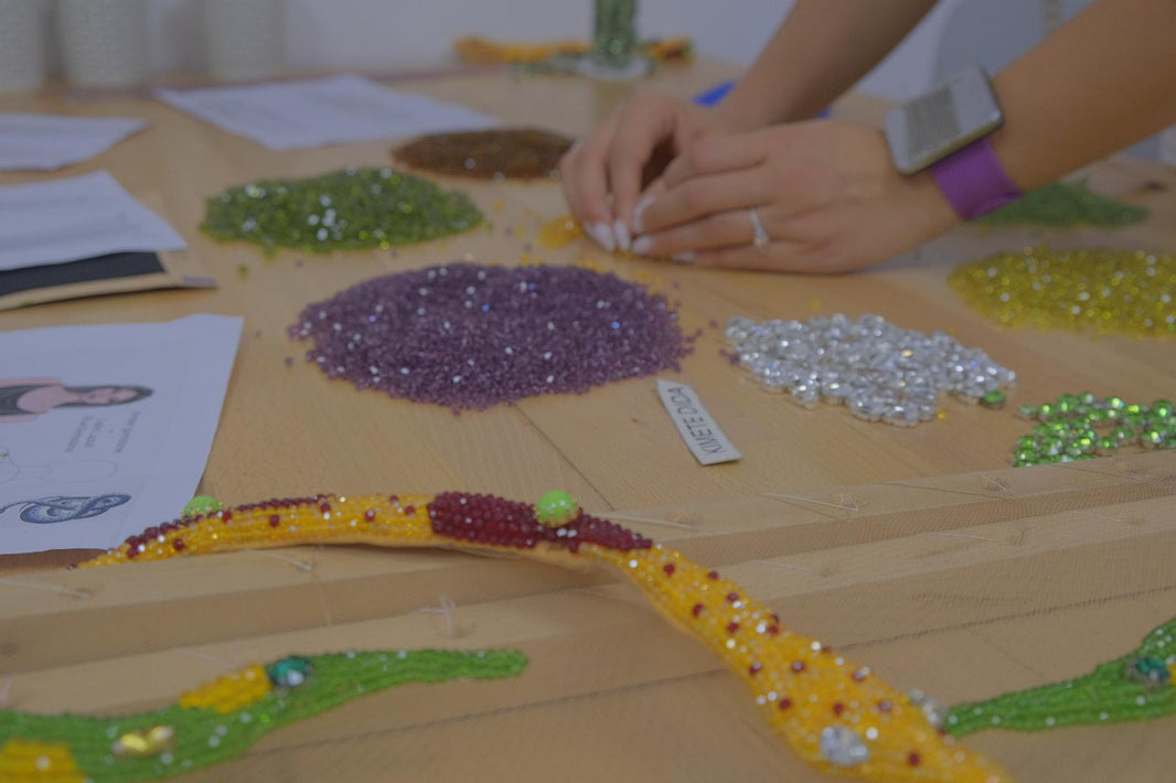 Every bead that goes onto a Kimete Dida gown is placed with intention. The embroidery is done entirely by hand, and each bead is then carefully hand-stitched into the fabric. This process takes time and skill, but it ensures that every gown carries the mark of true craftsmanship and individuality.